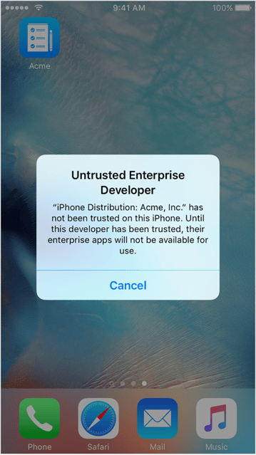 After set up, your device will prompt you to run the test script. When you first open an app that you've manually installed, you’ll see the notification “Untrusted developer”, you can allow it by accessing Settings > General > VPN & Device Management ( IOS >= 16.0 )