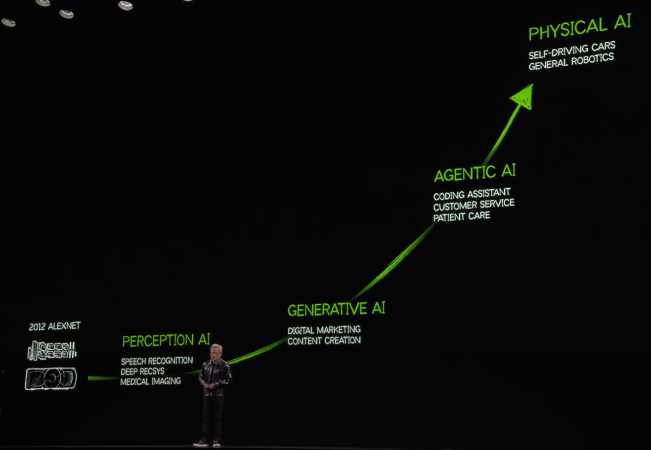 Four phases of AI evolution introduced by Jensen Huang, CEO of Nvidia, on Consumer Electronics Show 2025 (Image source: 2025 CES Nvidia keynote speech).