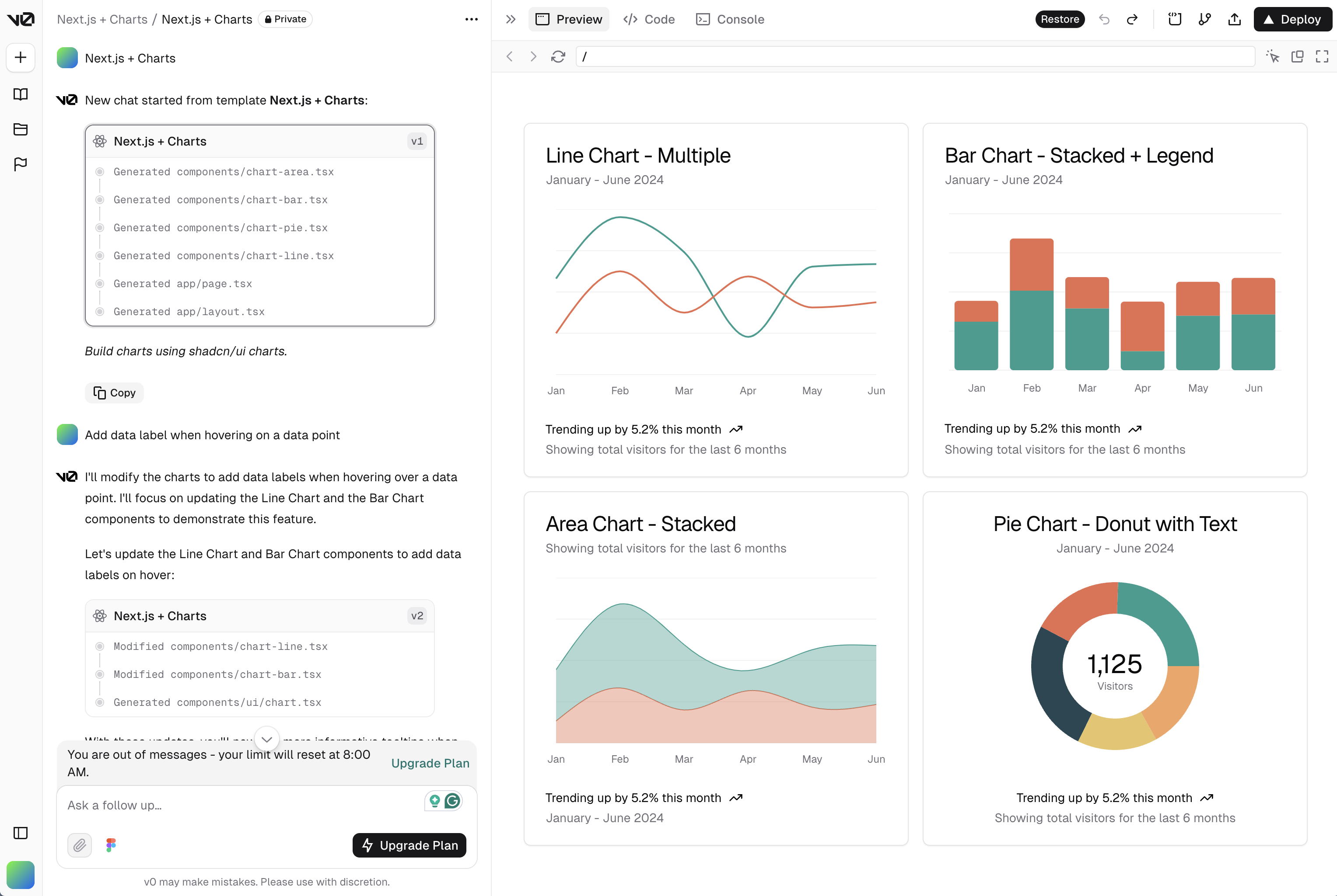 Text-to-UI on Vercel v0 enables product designers to visualize complex interactive prototype like dashboards and charts. Alternatively, you can also use co.dev, another text-based website generator backed by Y Combinator.
