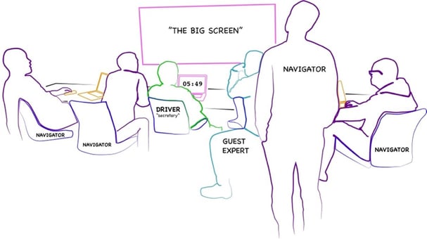Cross-functional teams collaboratively work on the same context, on the same task, at the same time, in the same physical or virtual space, using a single environment.