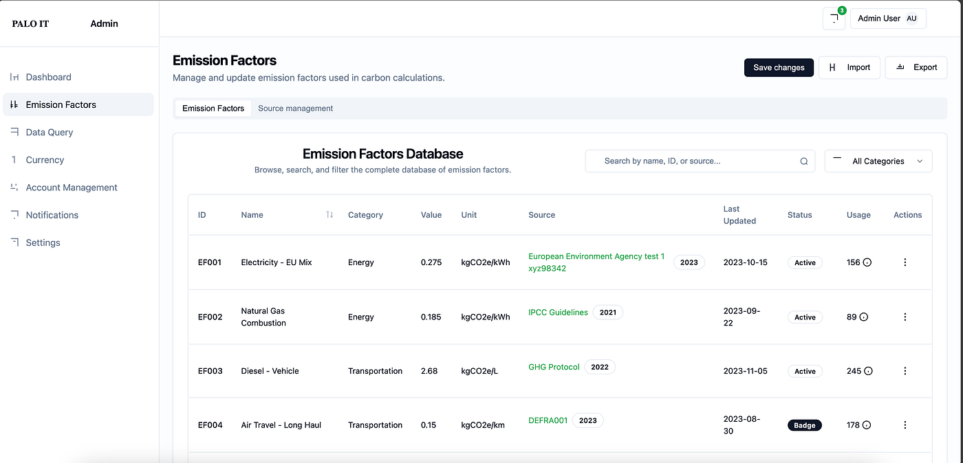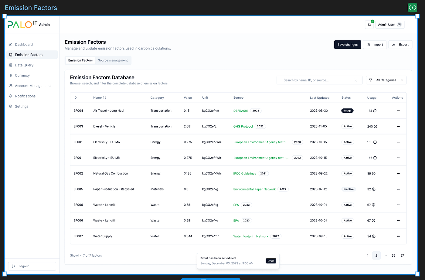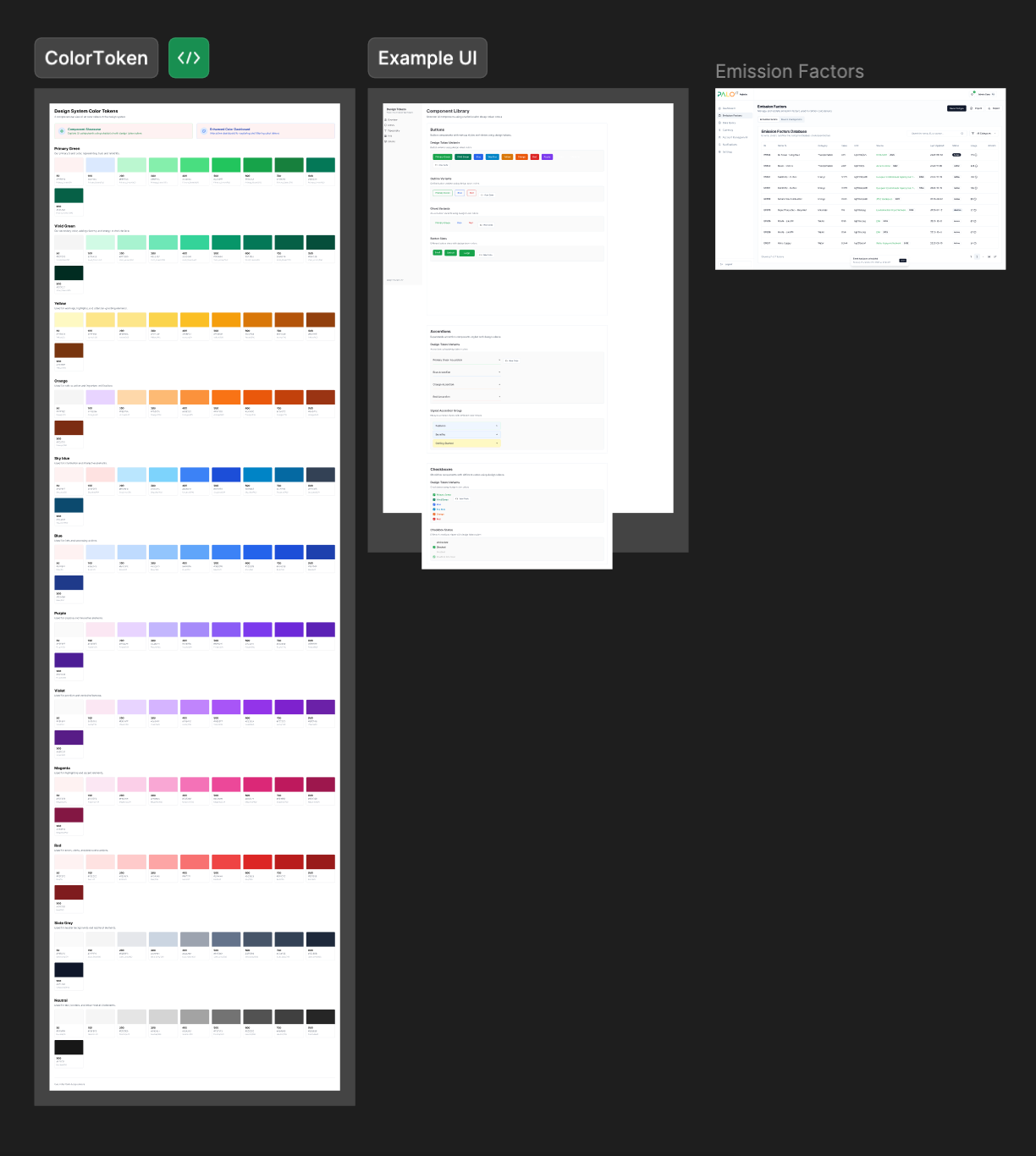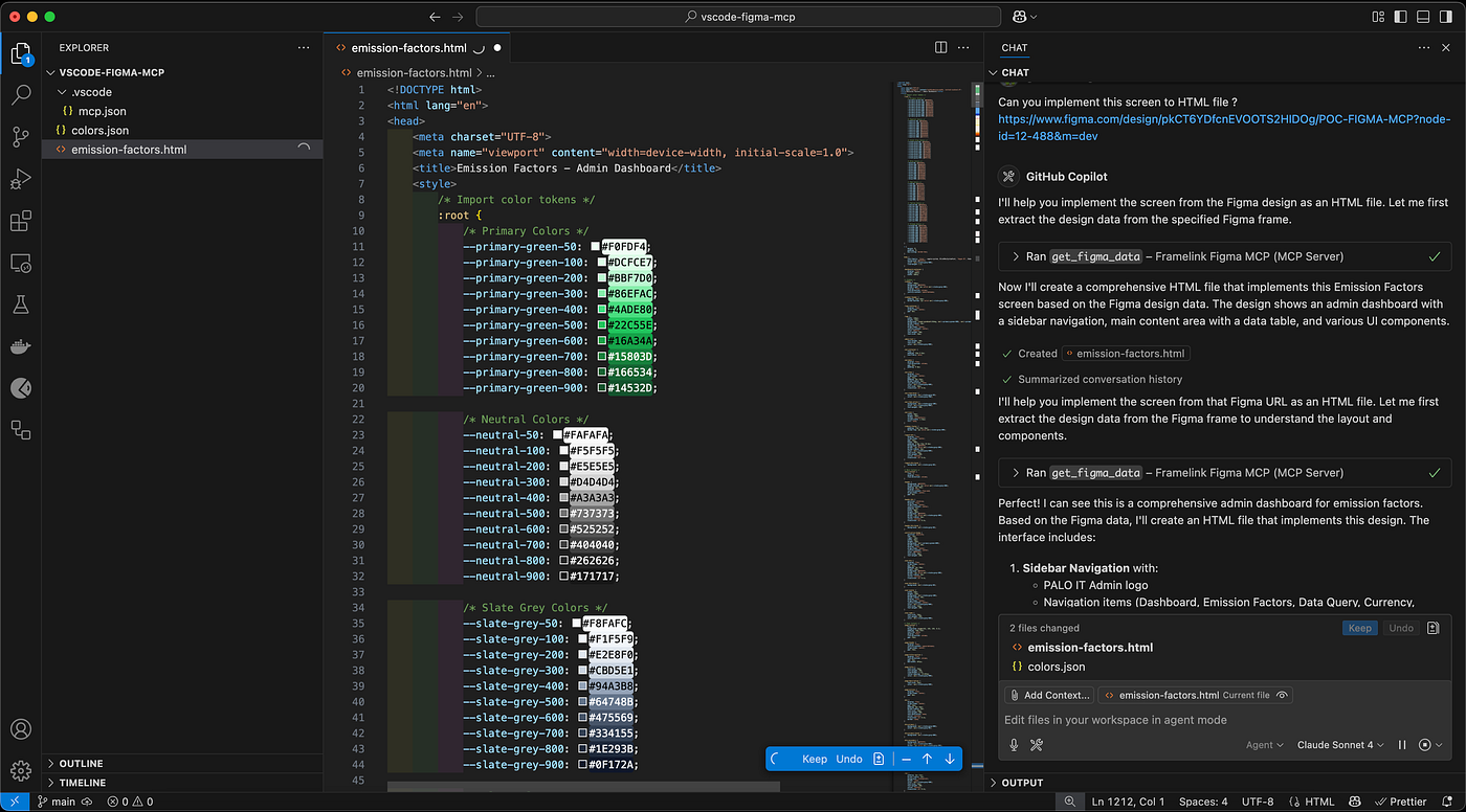 Copilot generates the Emission Factor page and references the color tokens from the previously generated JSON file (this happens automatically, no additional instruction needed).
