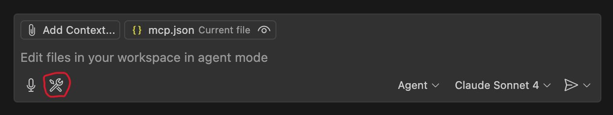 Open Visual Studio Code → Open Copilot Chat → Switch to Agent Mode, then click the wrench icon (as shown in the image).