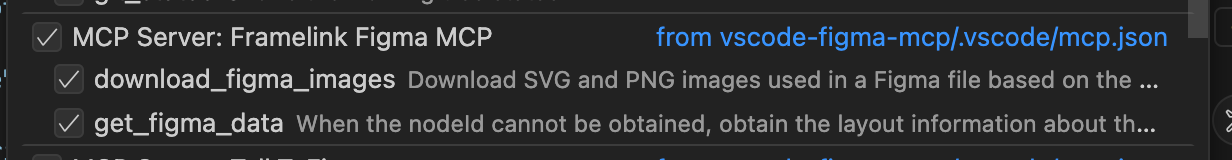 You should see a topic titled MCP Server: Framelink Figma MCP, with subtopics such as: