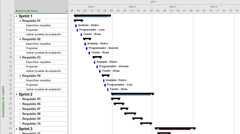 En este sprint hacemos el front, el siguiente el back y en el último hacemos las pruebas