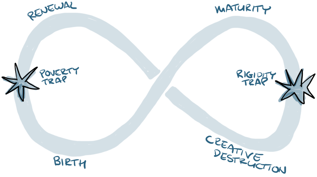 Hablar de ecocycle es hablar de la dinámica y evolución de sistemas adaptativos, constituidas por las trampas de pobreza y de rigidez.