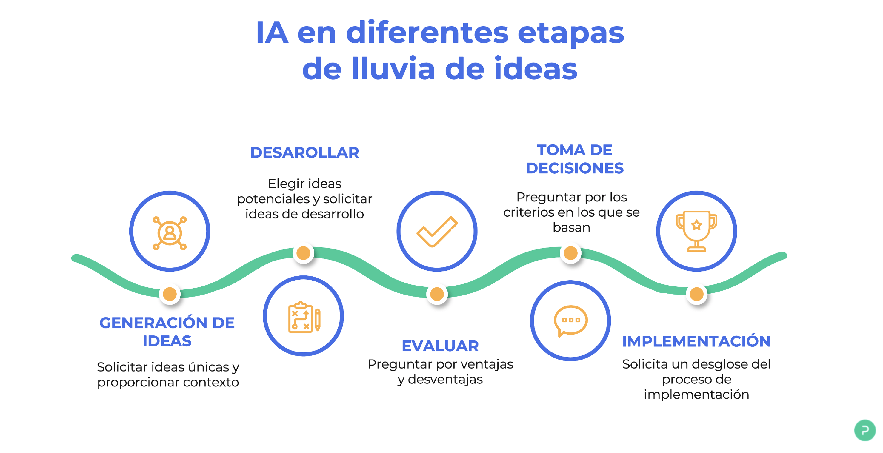 Para utilizarla en sesiones de lluvia de ideas, los profesionales del marketing pueden proporcionar indicaciones a herramientas como ChatGPT. Por ejemplo, una indicación podría ser "Generar ideas creativas para una campaña de marketing de seguros dirigida a los millennials". El modelo de inteligencia artificial generaría entonces una lista de ideas que los profesionales del marketing pueden utilizar para crear campañas de marketing más relevantes y efectivas.