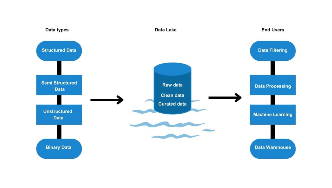 - Sin embargo, en los data lakes se almacenan datos sin estructurar.