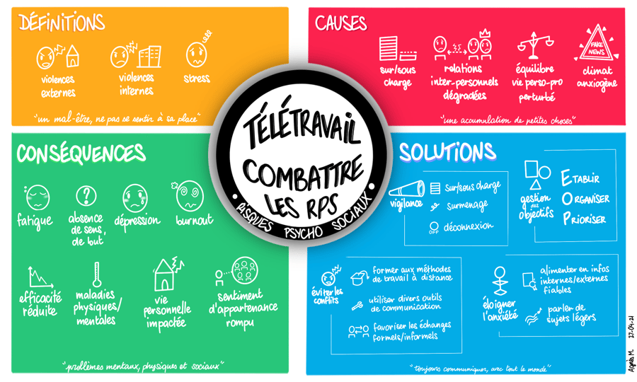 Si l’entreprise ne met pas correctement en place le travail à distance, cela peut nuire à la fois à ses performances économiques et au bien-être des collaborateurs. L’ensemble de ces conséquences néfastes sur les salariés sont appelées les risques psychosociaux ou RPS. Ils correspondent à des situations de travail où le stress, les violences internes ou externes, exercées sur des salariés, se font sentir. Les RPS peuvent engendrer des conséquences plus ou moins importantes sur la santé des salariés.